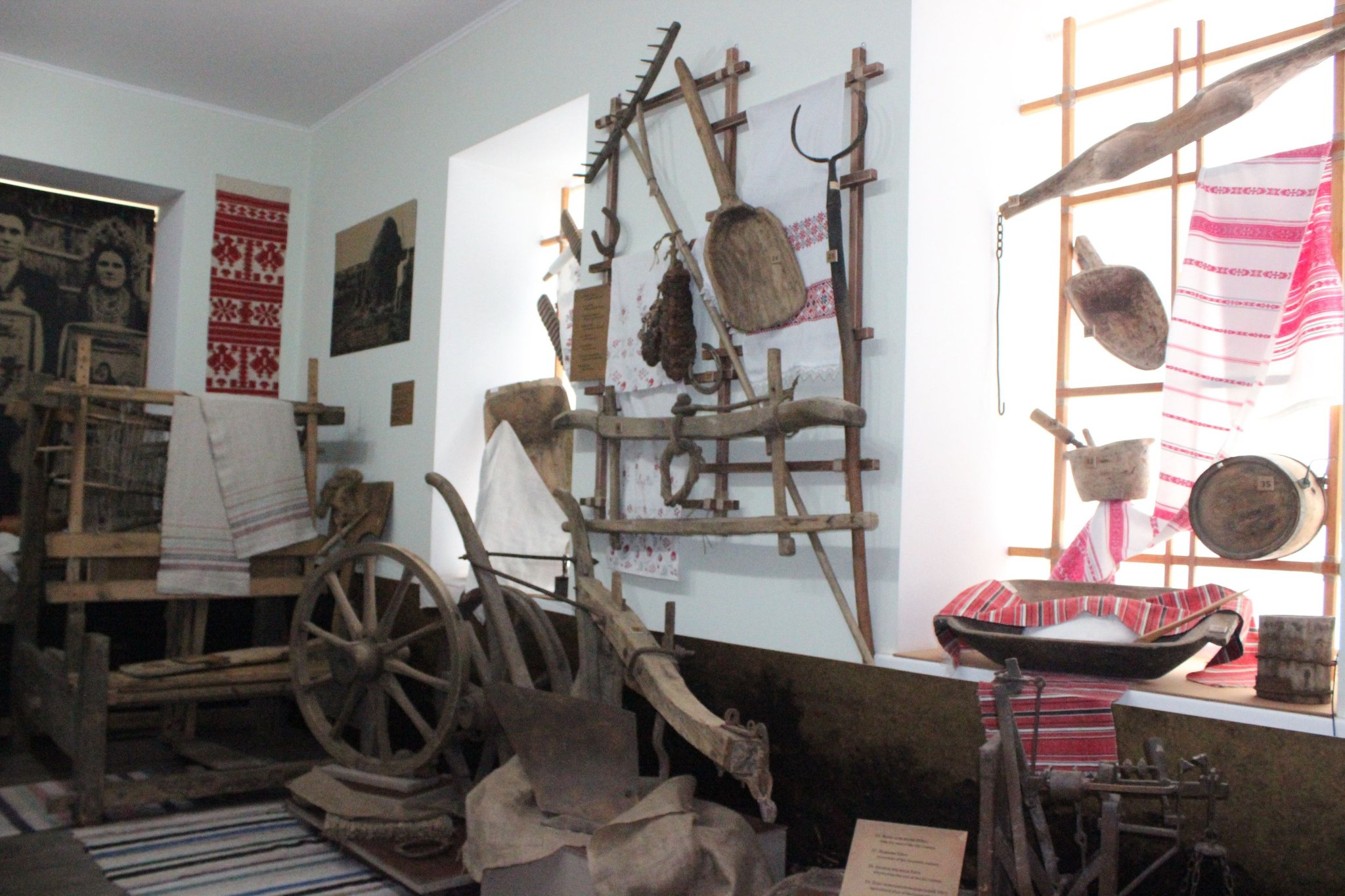 В експозиції розміщені дві прядки та ткацький верстат, а також зразки рушників, полотна та одягу поліських селян кінця ХІХ та початку ХХ століття.