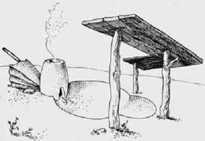 Для обробки залізної руди до стану металу використовували металургійні горни, споруджені з глини на поверхні землі чи в невеликих ямах. Всередину завантажувалась руда разом з деревним вугіллям і за допомогою міхів нагніталось ненагріте повітря. Відтак отримували напівфабрикат – так звану губчасту «крицю», котру проковували до стану залізних брусків, які вже були придатними для виготовлення тих чи інших виробів. Звісно, у брусках це залишались домішки, котрі видалялись у процесі виковування виробів.